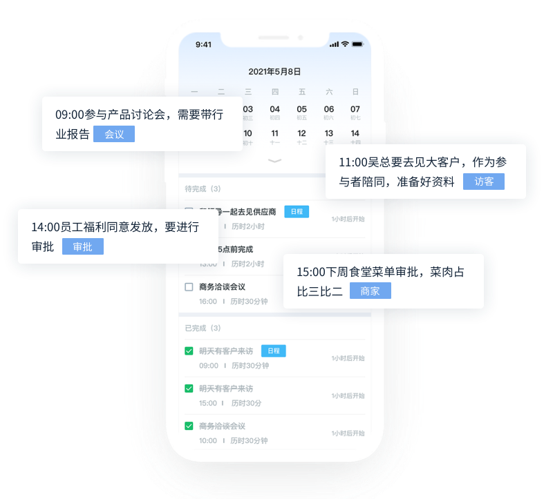 除了日程视图、月视图外,还有更合适移动端的周视图,让日程查看。时间规划更方便高效